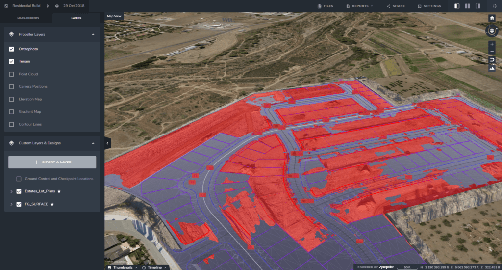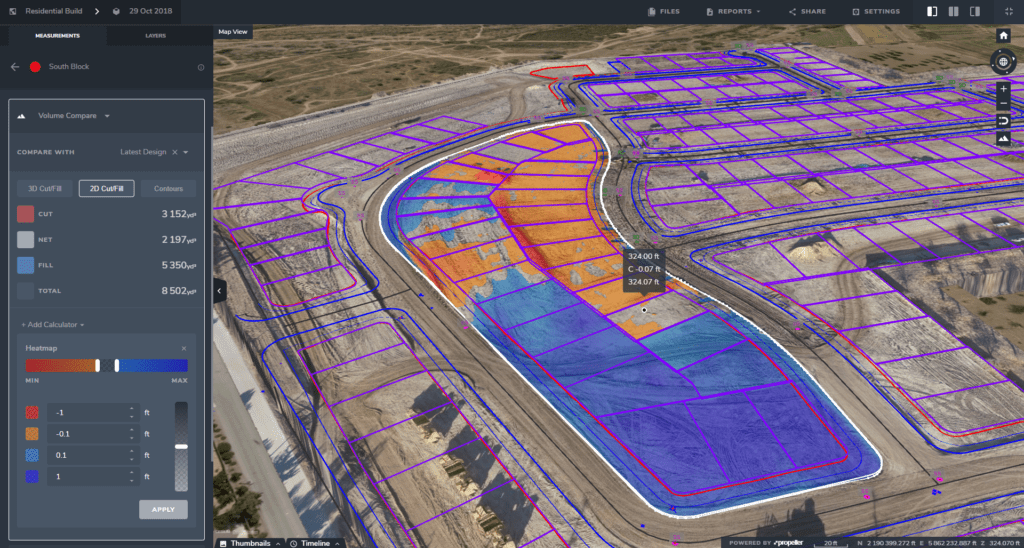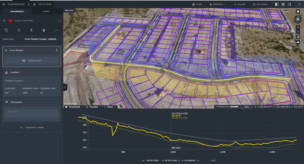 Using a DXF, you can upload one or multiple designs and see what your site looks like today against how it will look when the work is done. This lets you see how you’re progressing overall, as well as what the final site will look at end of life.