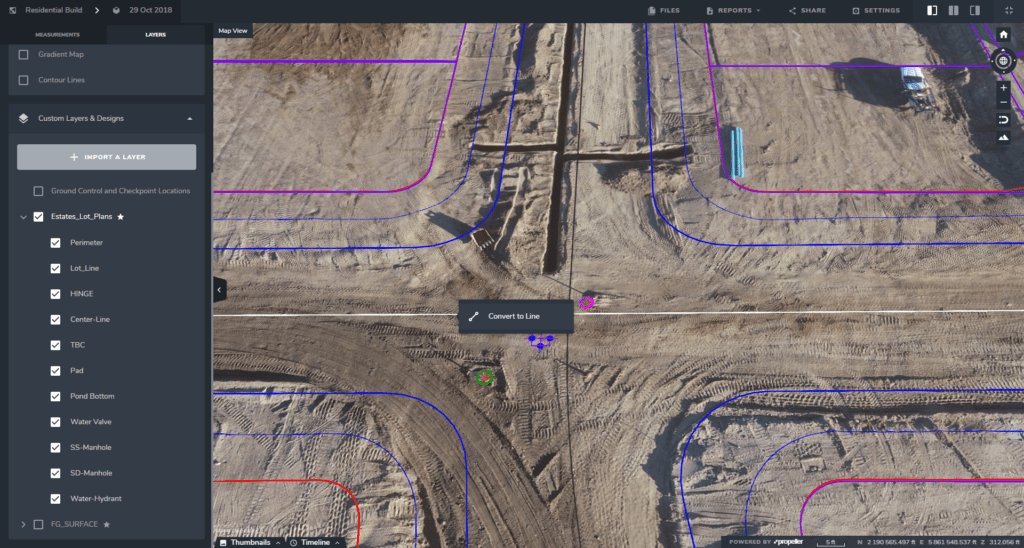 With a good drone data visualization platform, the DXFs you upload can be used just like in your CAD package: it’s one file that includes all your layers. You can upload it in one go, and then turn different layers on and off as needed.