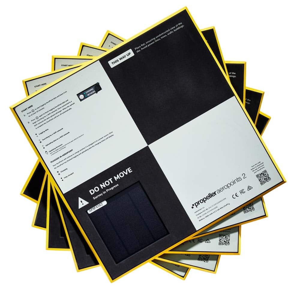 Propeller’s AeroPoints are GPS-enabled “smart” ground control points that reduce the margin of survey error from a scale of meters to centimeters in far less time and work hours than traditional ground control. Instead of manually marking GCPs with a base and rover, you can simply place an AeroPoint on the ground anywhere within range of your drone flight (1 AeroPoint covers 100 acres with Propeller PPK processing).