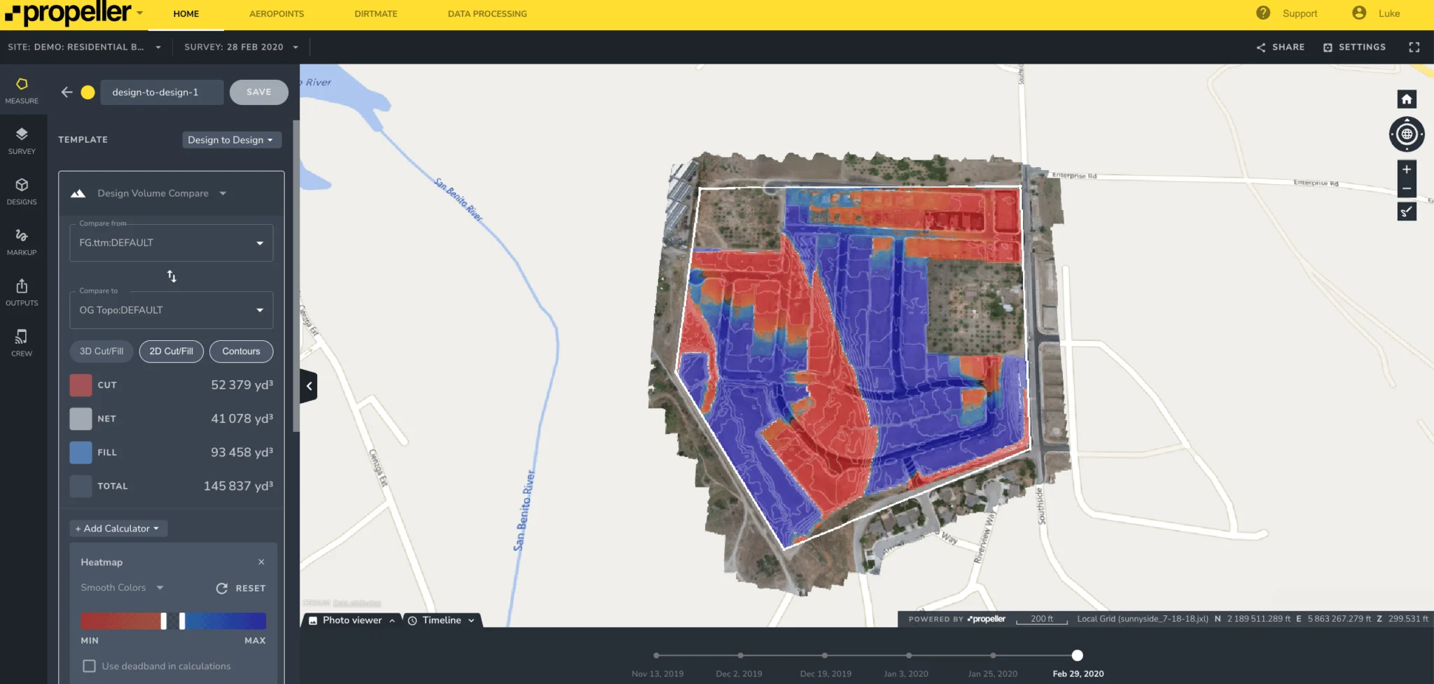 Even the best designs are only as good as your team’s ability to interpret and implement them. Accurate design-to-design comparison tools within a drone surveying software solution like Propeller enable you to better plan work and measure progress, beginning with pre-bid measurements and progressing to final grade completion.