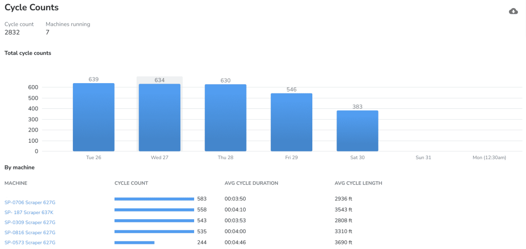 A key metric of progress tracking is calculating the cut and fill volumes your crews are producing. Scraper cycle count is usually measured manually by the operator, tallied on a piece of paper at the end of the day. The foreman then multiplies day’s count by the scraper pan volume to obtain the estimated volume moved that day. Unfortunately, this common practice is prone to error at each step of this manual process. Furthermore, cycle count totals reported at the end of the day or week prevent you from making data-driven decisions in near real time, when they matter the most.