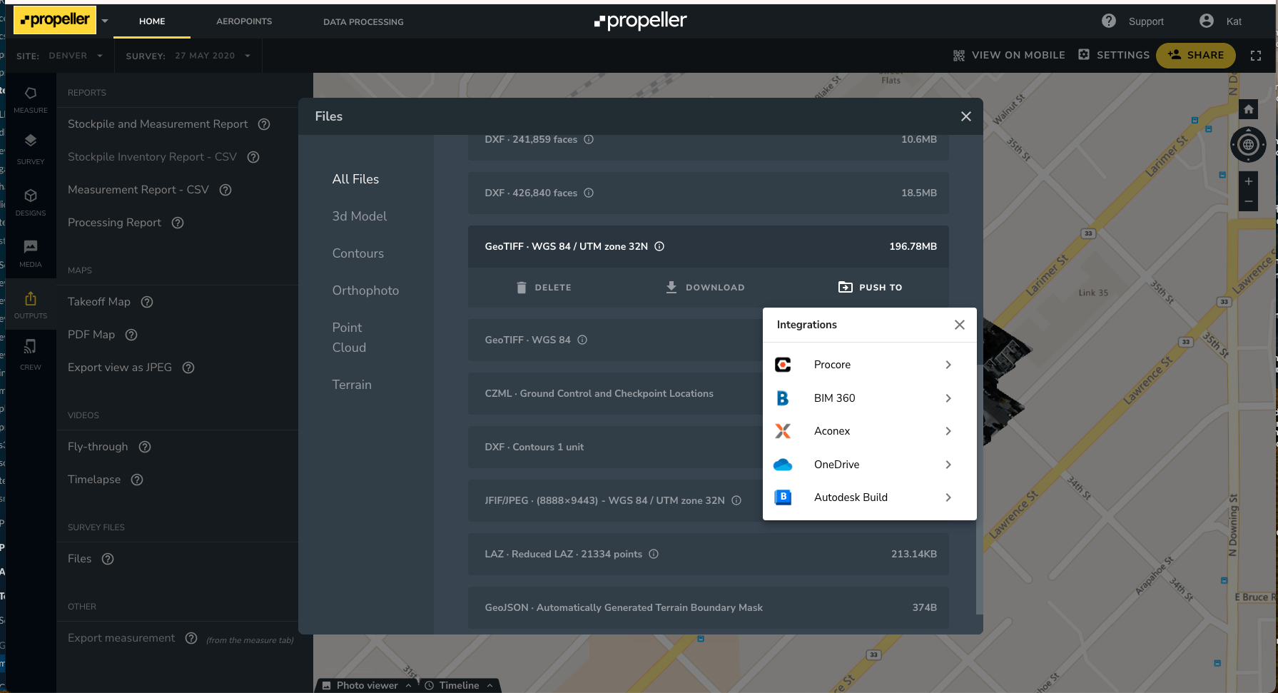 According to a survey conducted by KPMG, when people were asked how effective they are at maximizing value from their data, digital leaders in the construction industry showed to be 27% more effective than their competitors. Combine this with the fact that 90% of construction data goes unused, it’s clear that with the right technology and software, civil construction and earthworks companies can gain a competitive advantage and more effectively use and share their data. To maximize your effectiveness and efficiency with your site data, sometimes you may need to work outside the Propeller Platform. By using our integrations feature, your work can continue seamlessly by selecting which software you’d like to use via our export process.