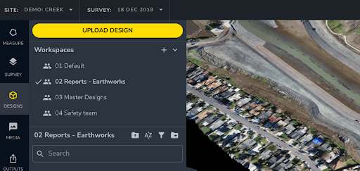 If you have subcontractors doing specific earthworks on-site, you might create a workspace just for them. That way, you know exactly where to find the measurements you need for material volume calculations to determine contract conformance and payment.