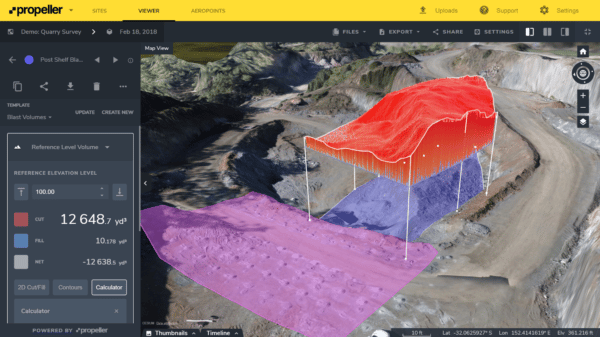 Once your drone-captured photos are uploaded to a platform like Propeller, you can generate centimeter-accurate 3D models and georeferenced orthophotos of the blast area for further measurement and analysis.