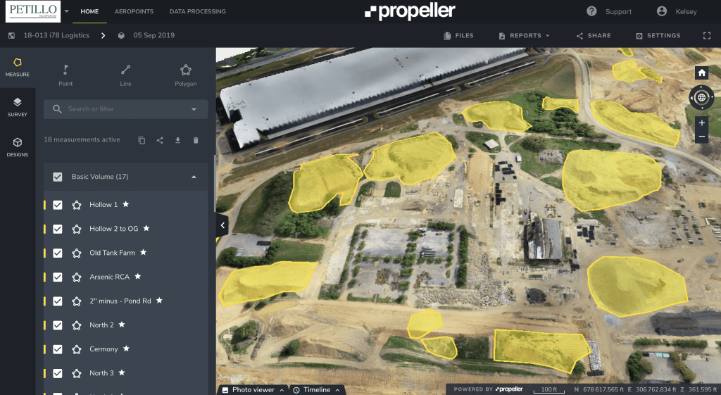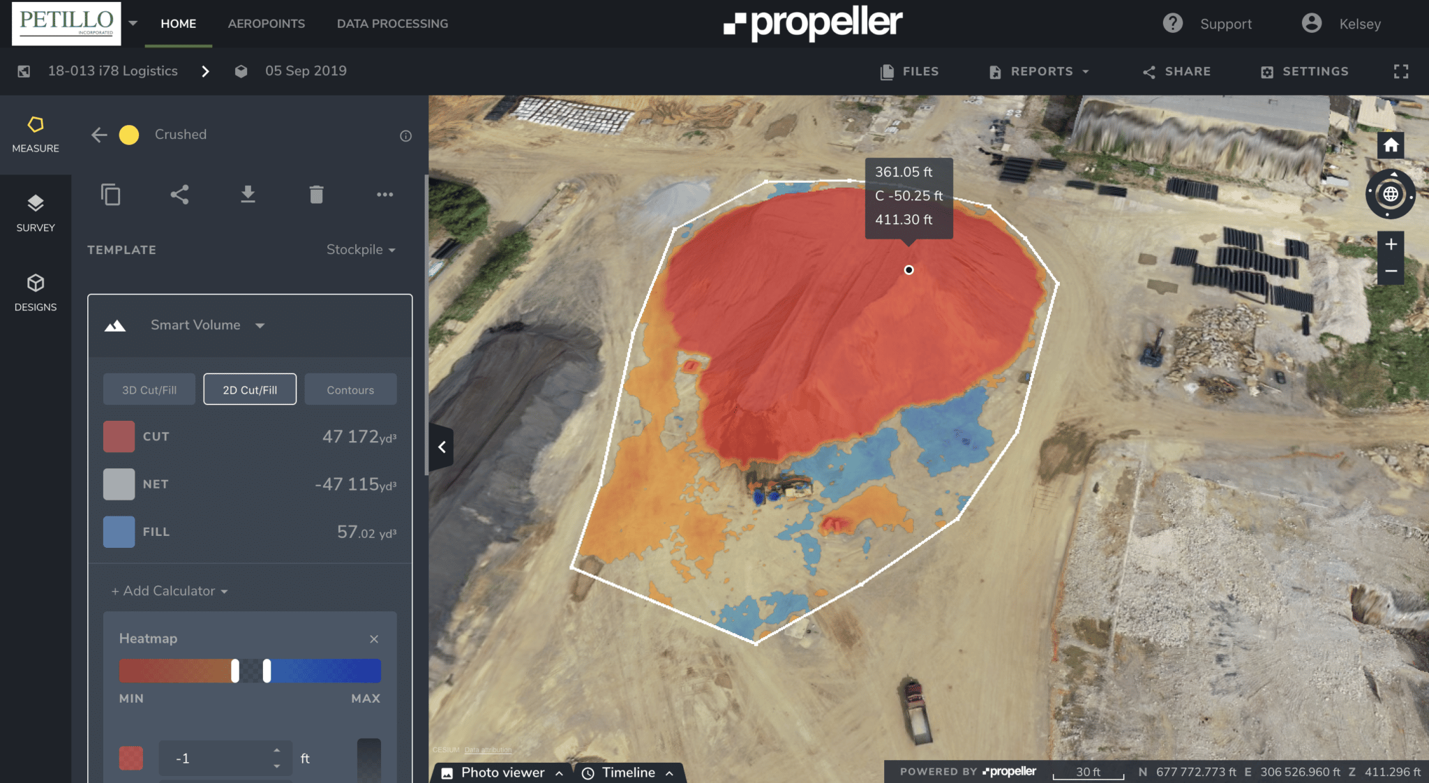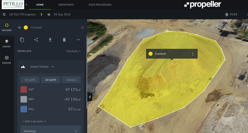 Usually, the LSRPs would audit material movement at the end of each project and walk the site to collect data, which would include a lot of guesswork. They’d be “pacing the piles and coming up with rough cubic yardage or shooting a survey, but because we have [Propeller], it makes it almost too easy,” said Fioretti.