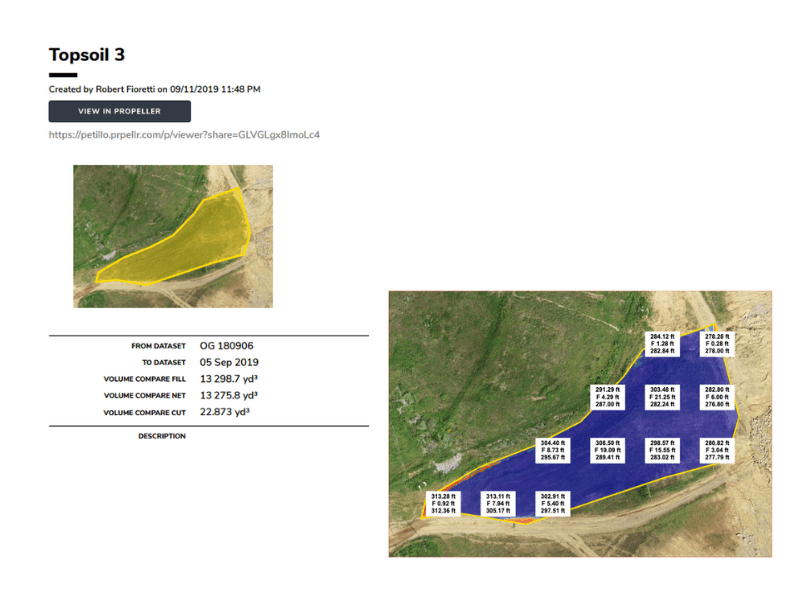 Using the Propeller Platform to maintain an up-to-date visual record of where and when dirt from each of their fifteen stockpiles has moved, has kept operations running smoothly for all parties. Petillo is sharing their reports to maintain total transparency.