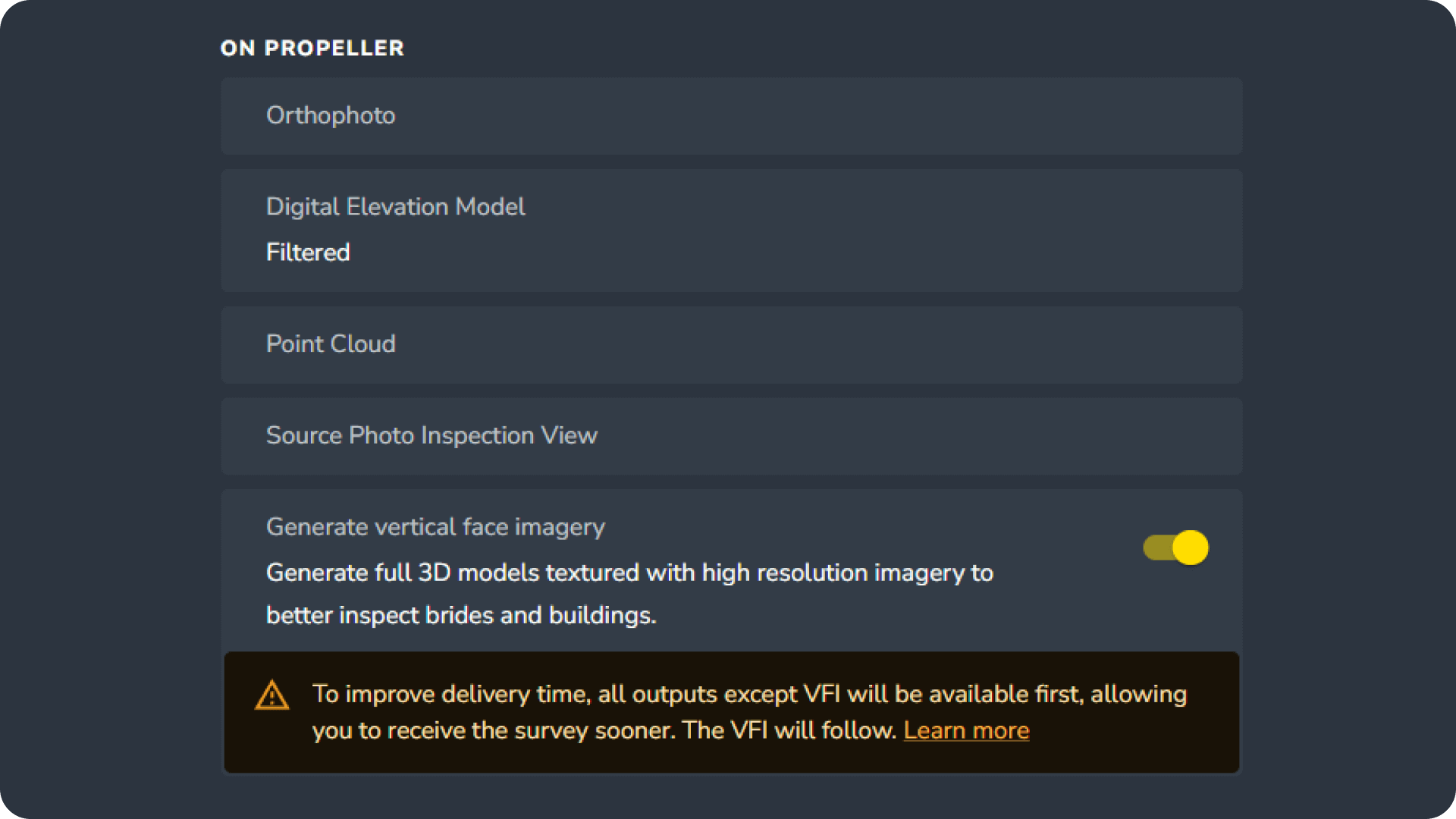 - Toggle on VFI (Vertical Face Imagery) during upload to improve modeling on vertical surfaces