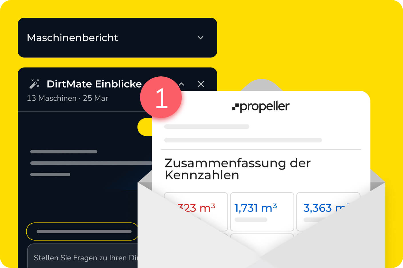 Mit Propeller haben Sie Fortschritt und Produktion immer im Blick und wissen somit stets, ob die Arbeit planmäßig verläuft. Mithilfe von Live-Maschinenkartierung, Volumenberechnungen und automatischen Berichten können Sie Probleme frühzeitig erkennen und datengestützte Entscheidungen treffen, um Verzögerungen zu vermeiden.