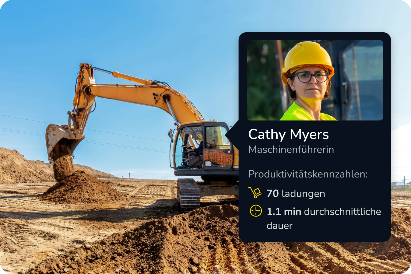 Optimieren Sie Einsatz und Transportrouten Ihrer Baumaschinen durch die Abbildung von Takt- und Stillstandzeiten in Echtzeit. So lassen sich Projektverzögerungen frühzeitig erkennen und im Team kommunizieren.
