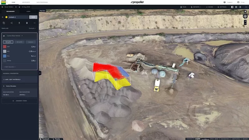 A great example is when we get asked by a client to confirm a quantity of a material. We can now do this instantly by opening up the latest survey in Propeller and, in a few seconds, calculate the volume and even send a link to the specific stockpile. Previously, we had to rely on an estimate.